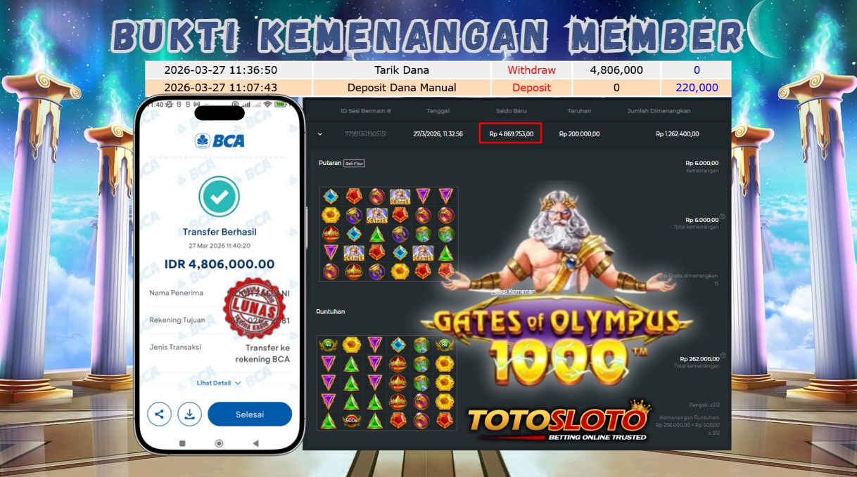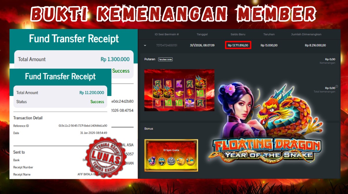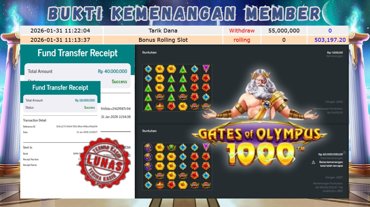 Kami percaya bahwa kepercayaan pemain dibangun dari bukti nyata, bukan sekadar klaim. Oleh karena itu, setiap kemenangan yang ditampilkan berasal dari transaksi real member dengan nominal beragam, mulai dari jutaan hingga ratusan juta rupiah.