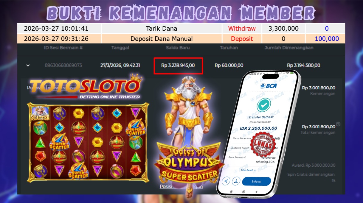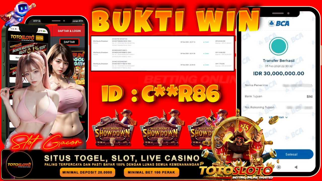 Halaman bukti kemenangan TOTOSLOTO menampilkan hasil kemenangan nyata dari member aktif yang bermain slot dan togel online setiap hari. Seluruh data ditampilkan secara transparan dan diperbarui secara berkala.